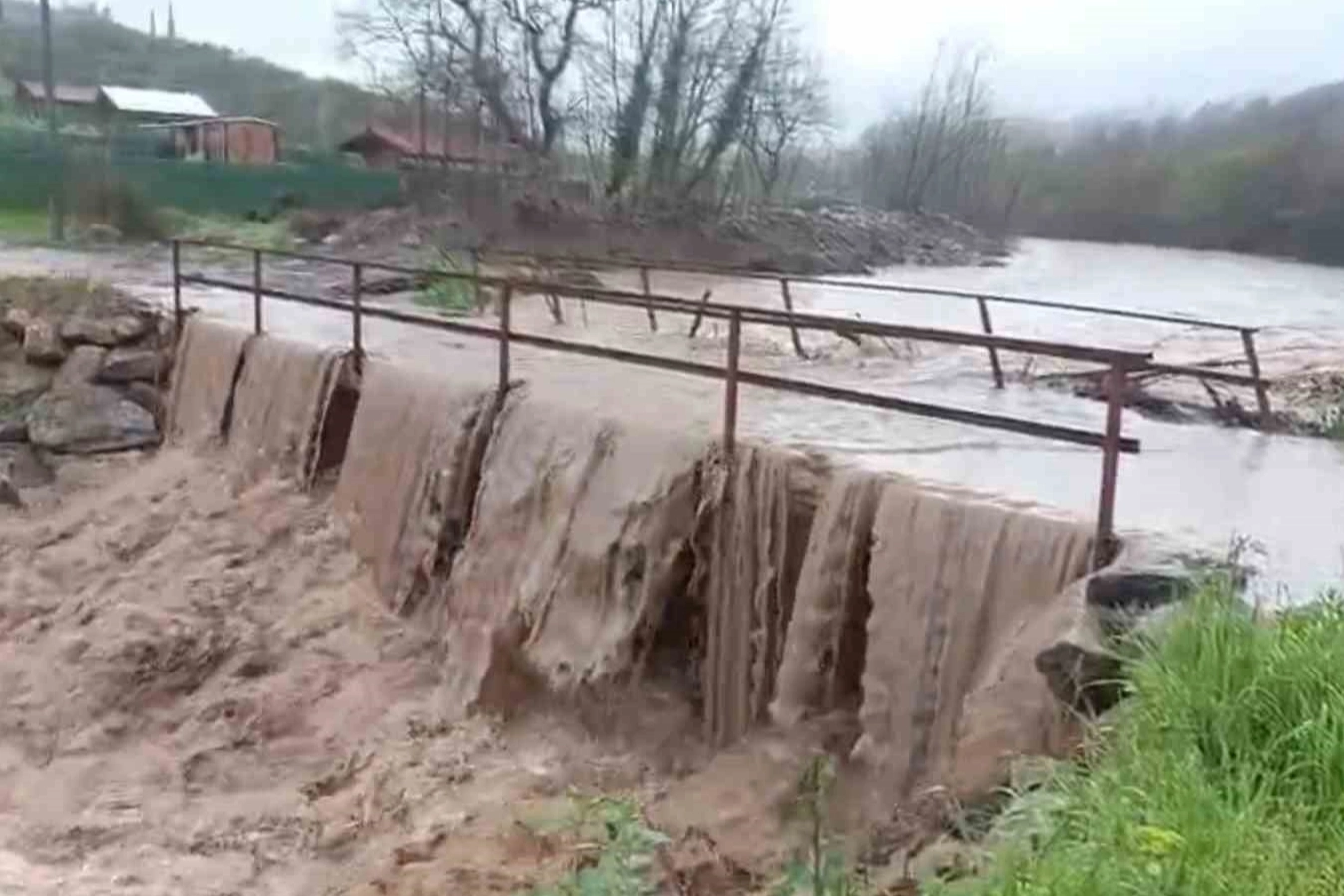 Gemlik’te bulunan Muratoba mahallesini Katırlı mahallesine bağlayan köprü aşırı yağışlar nedeniyle ulaşıma kapandı. Gemlik bölgesinde 2 gündür aralıksız olarak devam eden yağışlar sonrası derelerdeki su debisi yükselirken, yetkililer vatandaşları uyararak dere kenarlarından uzak durmalarını istediler.