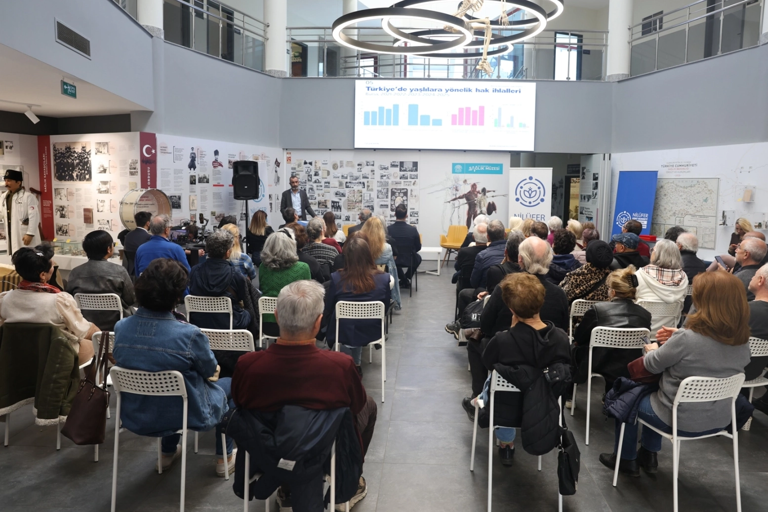 Bursa Nilüfer Belediyesi Dr. Ceyhun İrgil Sağlık Müzesi’nde gerçekleştirilen etkinliğin açılışında konuşan Nilüfer Belediye Başkan Yardımcısı Emre Karagöz, yaşlılık gerçeğinin kamusal akılla ele alınması gerektiğini belirterek, “Buradaki tartışmalar biz yerel yöneticilere ışık tutacak. Çıkacak sonuçlar kamusal iyileştirmeler için çok kıymetli” dedi. Nilüfer Kent Konseyi Başkanı Mustafa Berkay Aydın da yaşlanma meselesinin önümüzdeki dönemin politikalarını belirleyecek en önemli geçiş dönemlerinden biri olduğunu vurguladı.