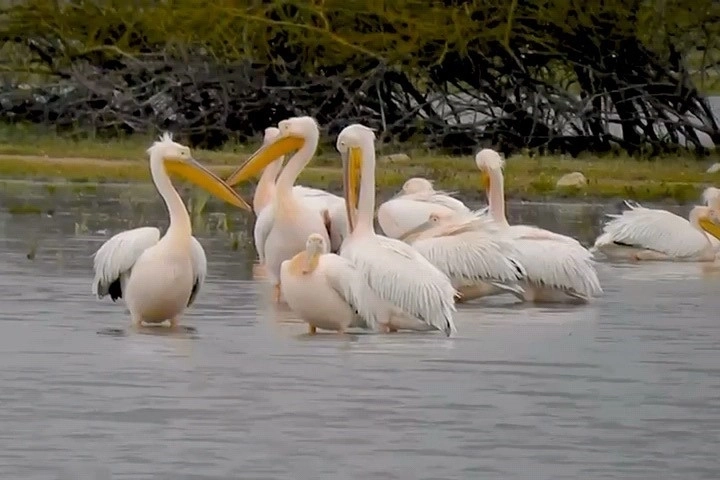 Göç eden pelikanlar, Bursa’nın İnegöl ilçesinde bulunan Boğazköy Barajı’nda mola verdiler.