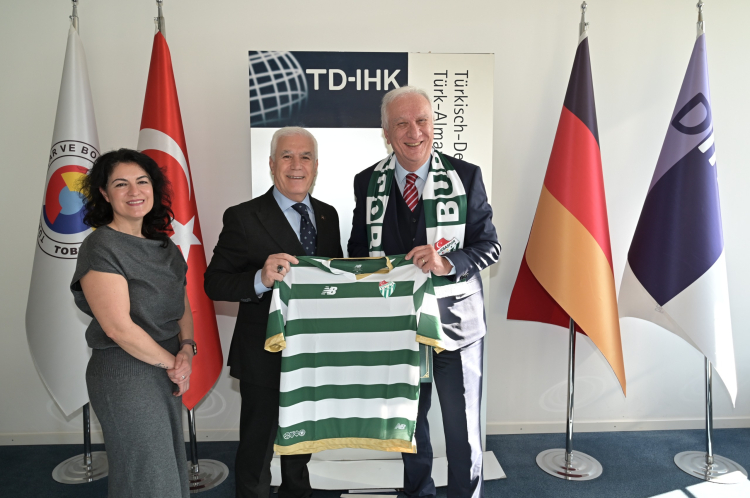 ITB Berlin 2026’da Bursa Büyükşehir Belediyesi’nin standı da büyük ilgi gördü. ‘Her Gülümseme Bir Hikâye Anlatır’ kampanyasıyla organizasyonda yer alan Bursa Büyükşehir Belediye Başkanı Mustafa Bozbey’in liderliğindeki heyet, 3-5 Mart tarihleri arasında yerli ve yabancı sektör temsilcileriyle bir araya gelerek Bursa’nın turizm potansiyelini anlattı. Fuardaki diğer firmaların stantlarını da gezen Başkan Mustafa Bozbey, birebir görüşmeler gerçekleştirerek yapılabilecek iş birliklerini konuştu. Türk-Alman Ticaret ve Sanayi Odası Genel Sekreteri Okan Özoğul’u ve Türk-Alman İşverenler Derneği Başkanı Remzi Kaplan’ı da ziyaret eden Başkan Mustafa Bozbey, yapılabilecek iş birlikleri hakkında fikir alışverişinde bulunurken Bursaspor forması ve atkısı hediye etti.